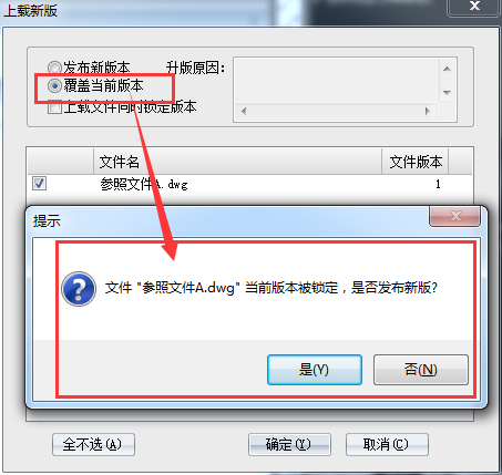 ②点击按钮【是】系统会自动把外部参照发布一个新版,原有版本保存于服务器中。