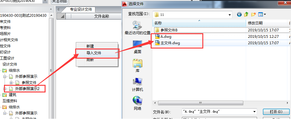 ①将主文件、参照文件通过右键菜单中的【导入文件】功能上传至协同平台中。