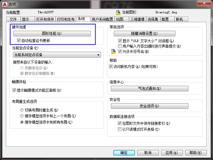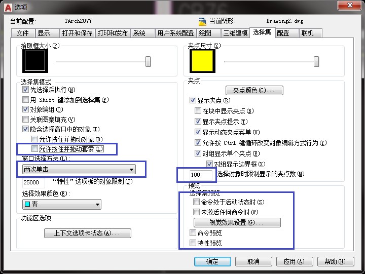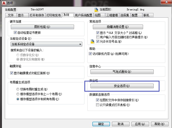 4、输入命令options弹出如下截面,按图设置。