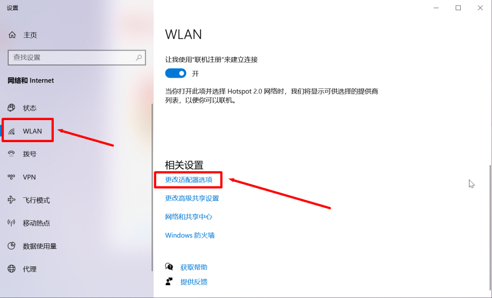 ②网络设置中点击左侧“WLAN”或“以太网”,然后点右侧“更改适配器设置”
