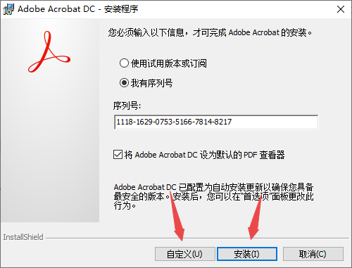 2、然后直接点“安装”或者点“自定义”选择安装位置。