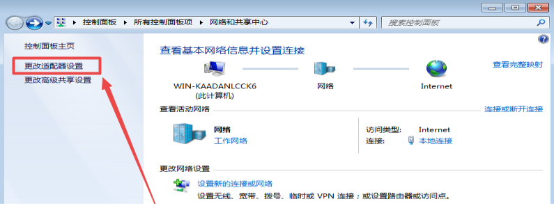 ②点击窗口左侧的“更改适配器设置”,进入后找到“本地连接”在上面点“右键”进入“状态”。