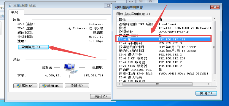 ③点击“详细信息”,里边的IPv4地址就是你的IP地址(这里是看当前ip,改ip的话点左下角属性)