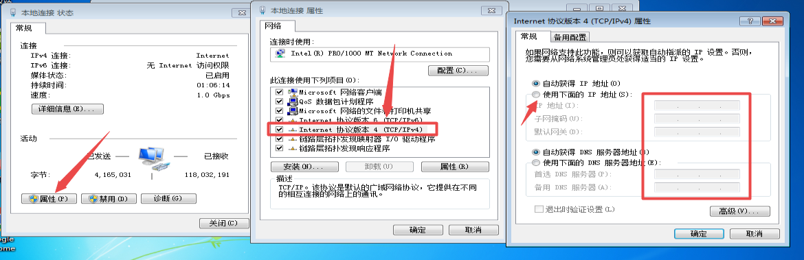 ④如您要更改IP则点击上图中的“属性”按钮,双击“IPv4”那一行进去更改
