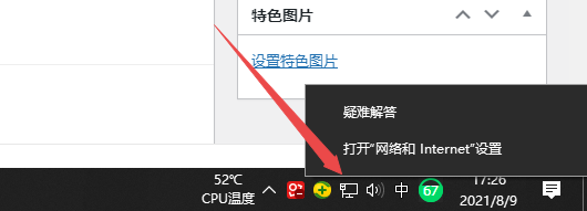 ①在右下角“小电脑图标”上点右键选择“打开网络和Internet设置”