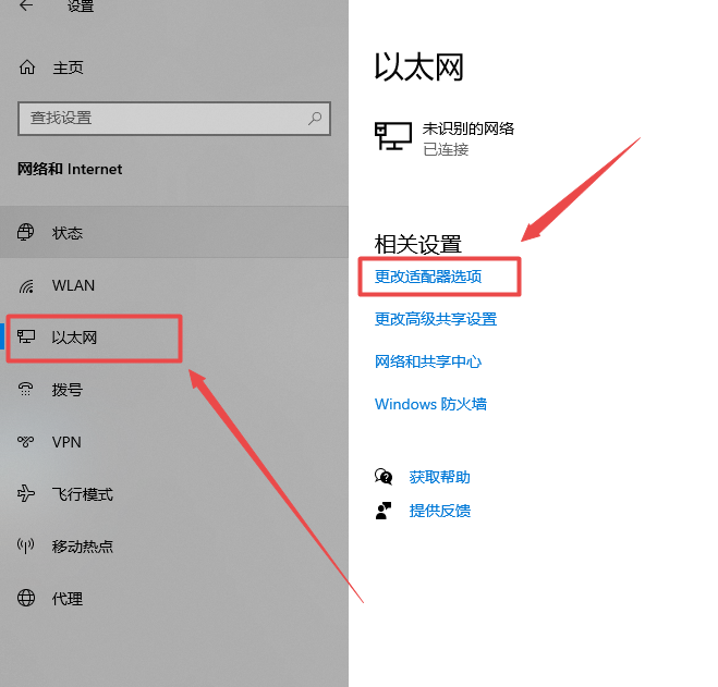 ②点击左侧“以太网”在点击右侧“更改适配器设置”进入