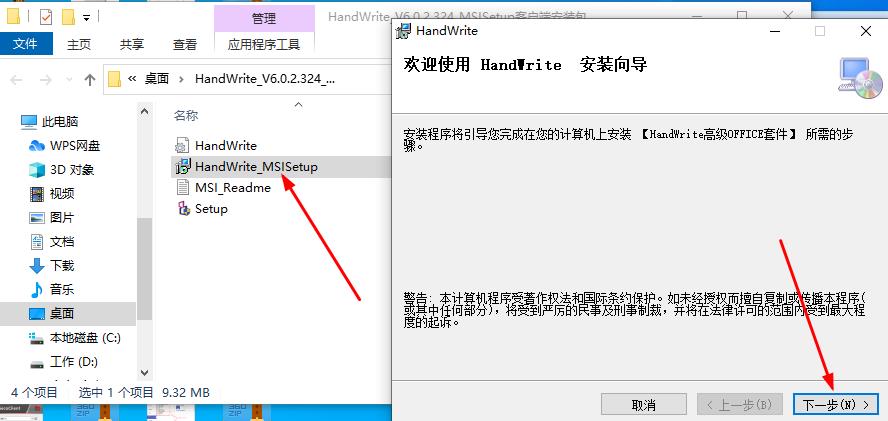 1、关闭浏览器后双击“HandWrite_MSISetup”安装,如果安装进度条卡住可能是有报错,用鼠标把安装窗口挪开就能看到,点确定就行不用管。然后重启浏览器。