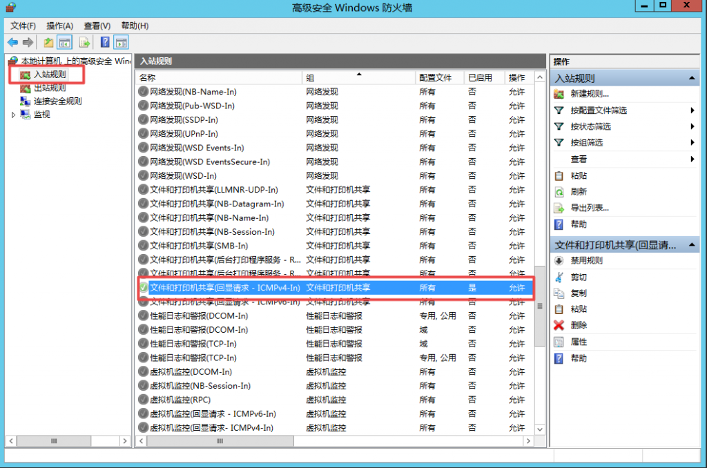 去防火墙的高级设置启用“回显”入站规则解决ping不通问题